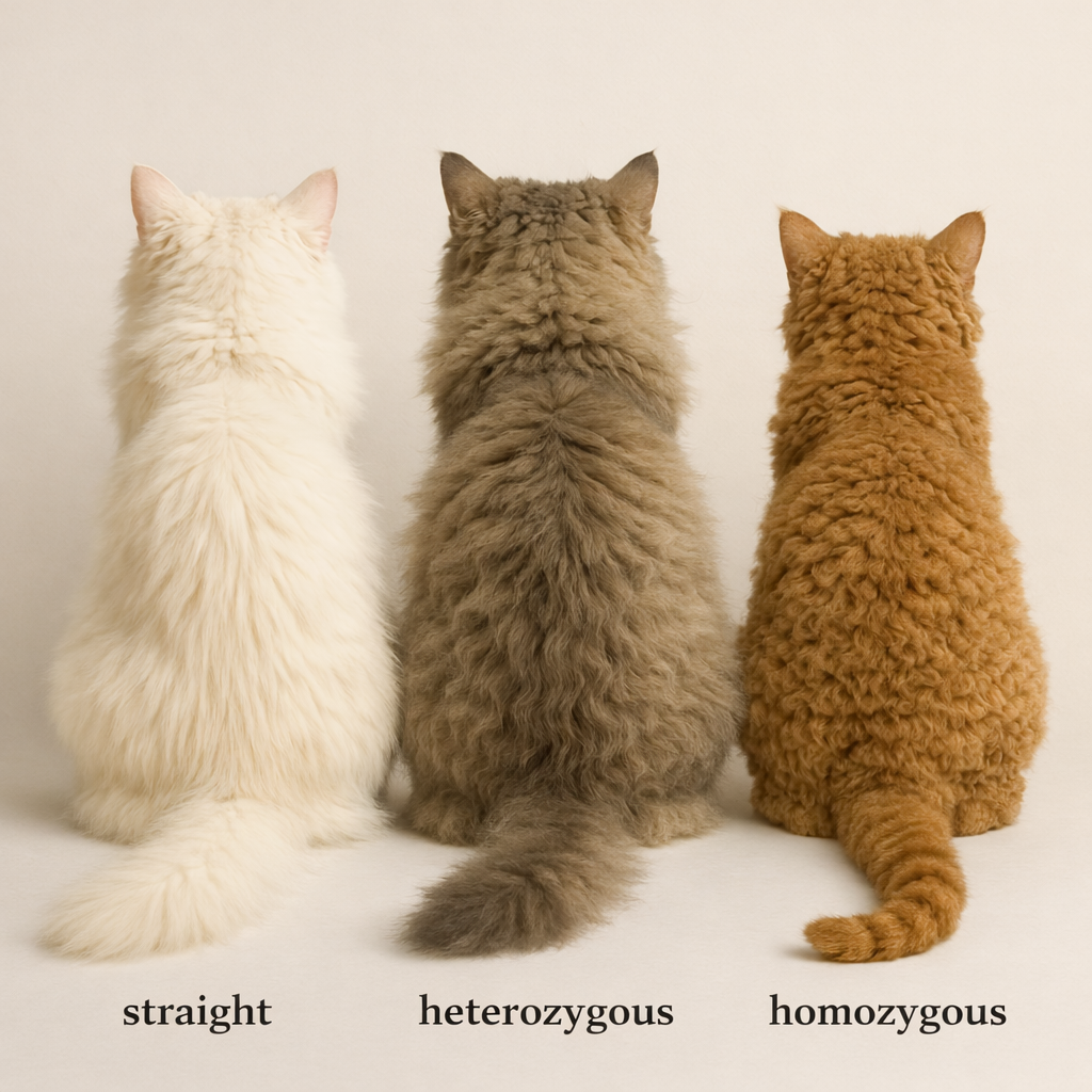 In the Selkirk Rex, the terms homozygous, heterozygous, and straight-coated refer to genetic variants that influence the degree of curl in the coat. This is all linked to the presence or absence of the gene responsible for curls, often referred to as the S gene.